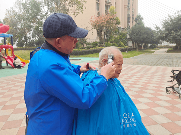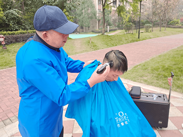 太铭文化网重庆消息周秋连报道:12月1日,重庆市涪陵区江东贵博东方明珠小区暖意融融,小区5栋退役老兵黄诚谊在5-6栋间的游乐场开展免费义务理发服务,专项为居民提供男士平头修剪,以实际行动践行退役军人初心使命,为邻里生活送去便利与温暖。