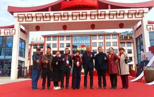 张荣林主席带队的考察团与国泰酒业郑强、龚希强在总部大门前留影纪念。