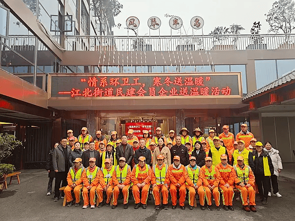 1月23日,“情系环卫工,寒冬送温暖”活动在重庆市涪陵区江北街道风情半岛度假酒店温馨举行。民建会员何守惠精心准备了丰盛的团年午餐,何松提供了大米、食用油等慰问物资。民建涪陵区委主委陈圣玲、江北街道主任罗波亲临现场,向江北片区40余名环卫工人致以冬日的温暖与新春的祝福,感谢他们为城市环境付出的辛勤努力。