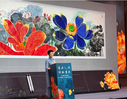 此次展览李小琳特意为举办地澳门精心创作了以荷花为主题的画作。荷花作为澳门的重要象征,蕴含着深厚文化底蕴。李小琳凭借精湛技艺与深重修为,笔墨精微与大气高格浑然一体,将荷花的高洁姿态与澳门的独特风情完美交融,跃然纸上。围绕本次展览主题,李小琳还以澳门为题创作出了《华莲丹心》与《爱在人间》两首饱含深情的歌曲,以悠扬旋律传递对澳门的热爱与祝福,诗书画词曲,交相辉映,堪称一绝。