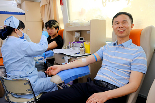 灵官殿镇毛荷殿村党员刘定坤作为RH阴性"熊猫血"携带者,看到镇政府公众号通知后,第四次挽袖捐献。“这种血型稀缺,能为急需的人提供帮助,挽救生命,我觉得非常有意义,这也是我坚持献血的动力。”刘定坤说。