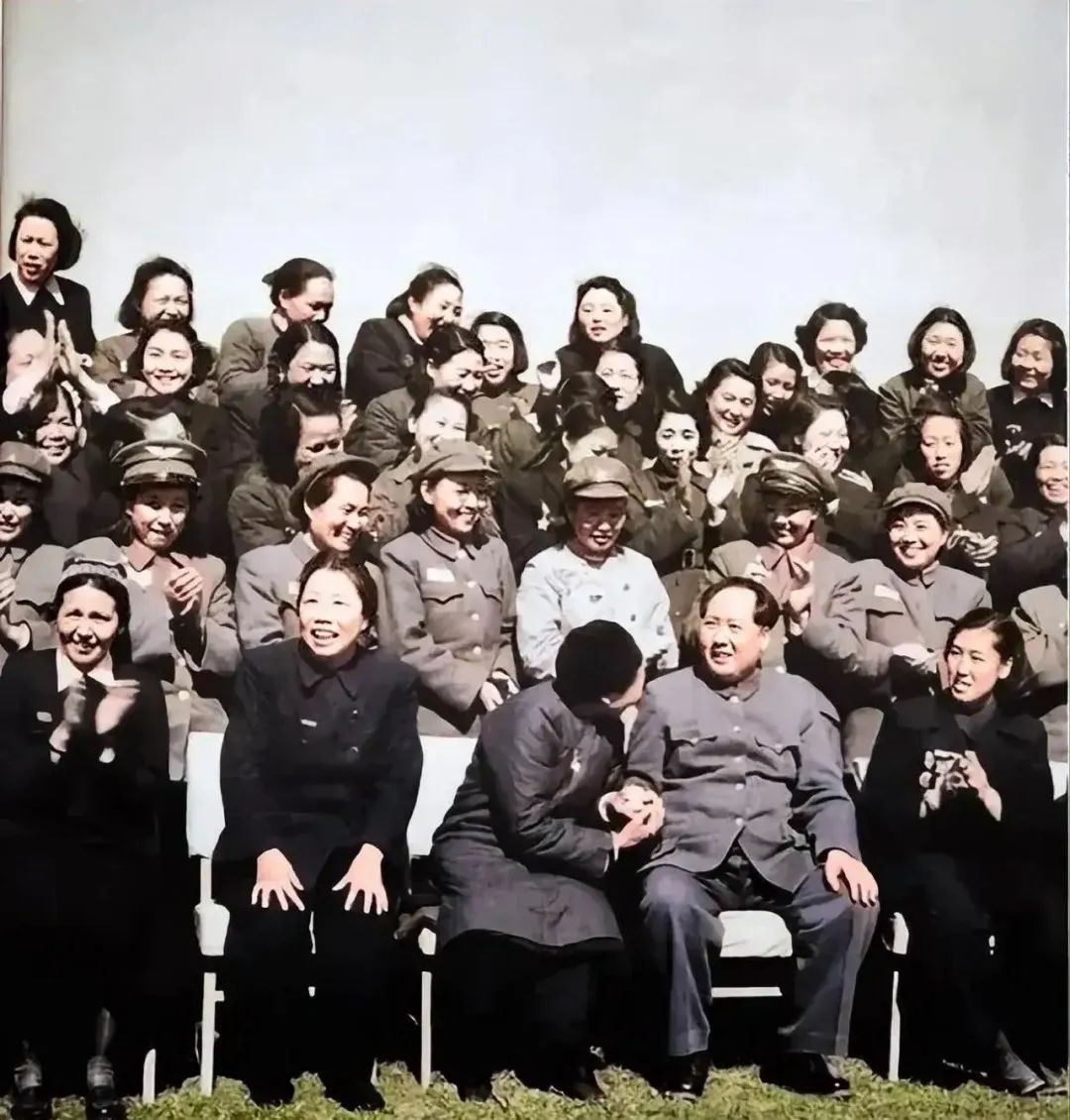 这个老太太不简单,她和毛主席并列坐在最前面,大家羡慕地看着她。