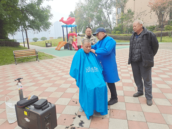 太铭文化网重庆消息周秋连报道:12月1日,重庆市涪陵区江东贵博东方明珠小区暖意融融,小区5栋退役老兵黄诚谊在5-6栋间的游乐场开展免费义务理发服务,专项为居民提供男士平头修剪,以实际行动践行退役军人初心使命,为邻里生活送去便利与温暖。