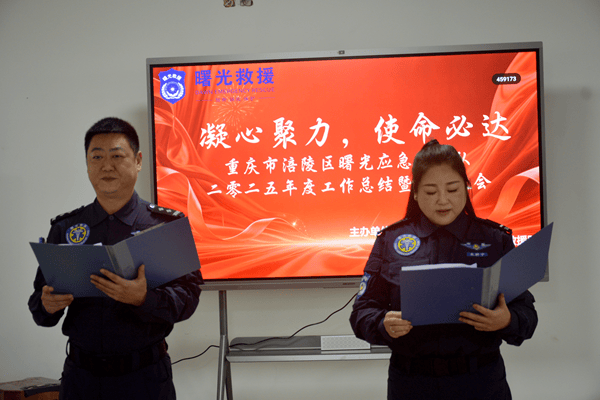 时代中国网重庆消息周秋连报道:2026年1月16日,重庆市涪陵区曙光应急救援队2025年度工作总结暨表彰大会圆满举行。大会以“凝心聚力,使命必达”为主题,部分队员、志愿者及特邀嘉宾齐聚一堂,回顾全年救援工作成果,表彰先进典型,举行肩章授予仪式,重温救援誓词,为新一年应急救援工作凝聚奋进力量。