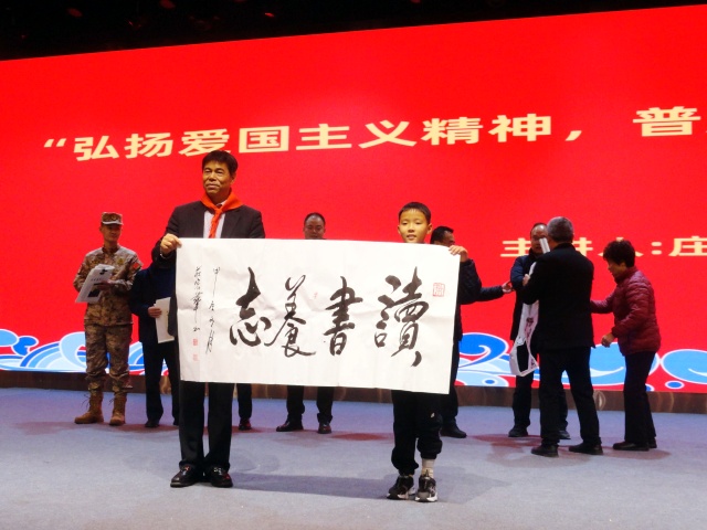 为鼓励基层干部群众和青少年学生,报告会上,庄宏华老司令员还向与会单位代表现场赠送了自己精心创作的精美书法作品。